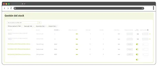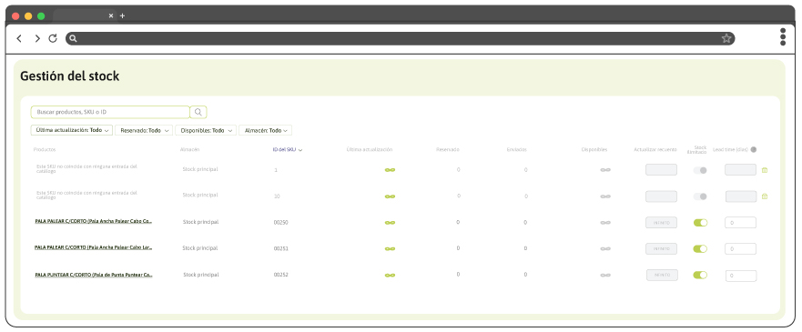 - Filtrar por fecha de actualización, cantidades reservadas o disponibles.