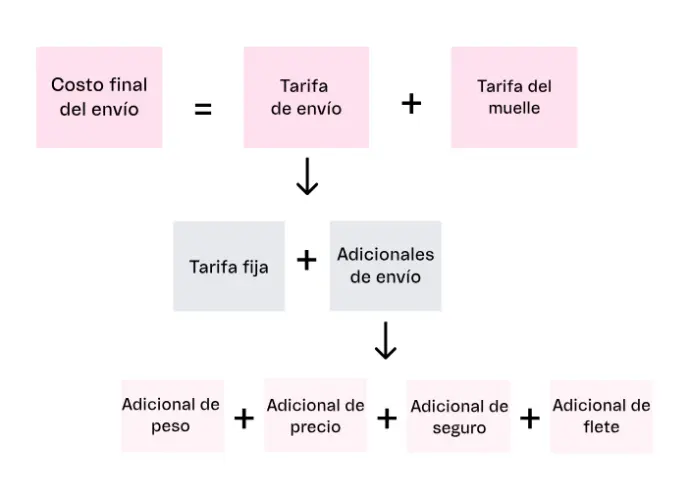 La tarifa de envío = Costo fijo + adicionales de flete aplicables