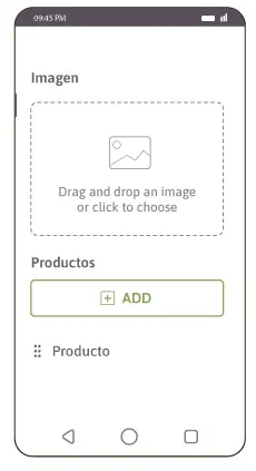 • Imagen: En esta sección podrá seleccionar la imagen que se mostrará en el componente e indicar para la misma, los productos que se desean destacar.