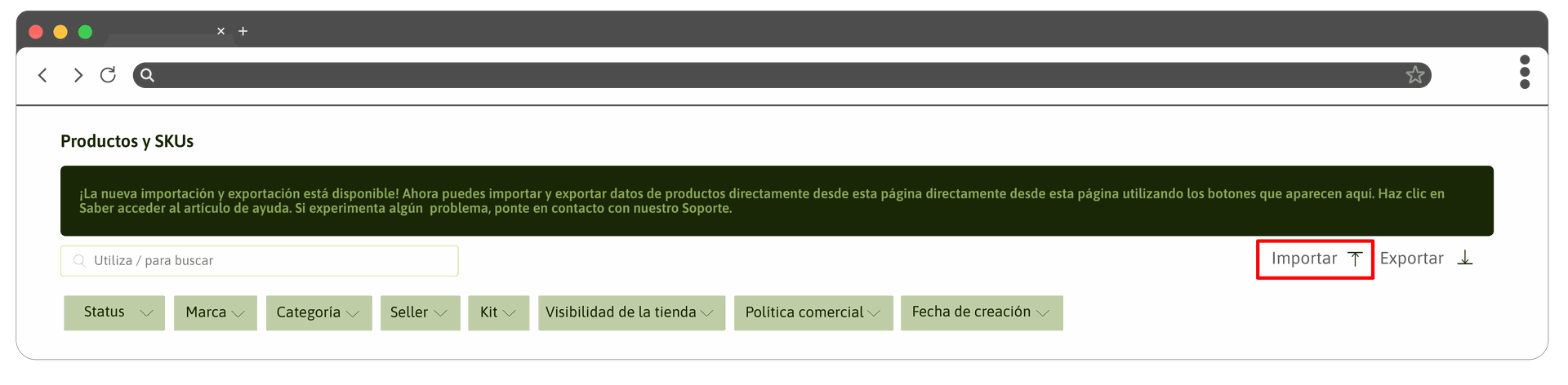 - Cargar del archivo en VTEX a través de la opción Importar.