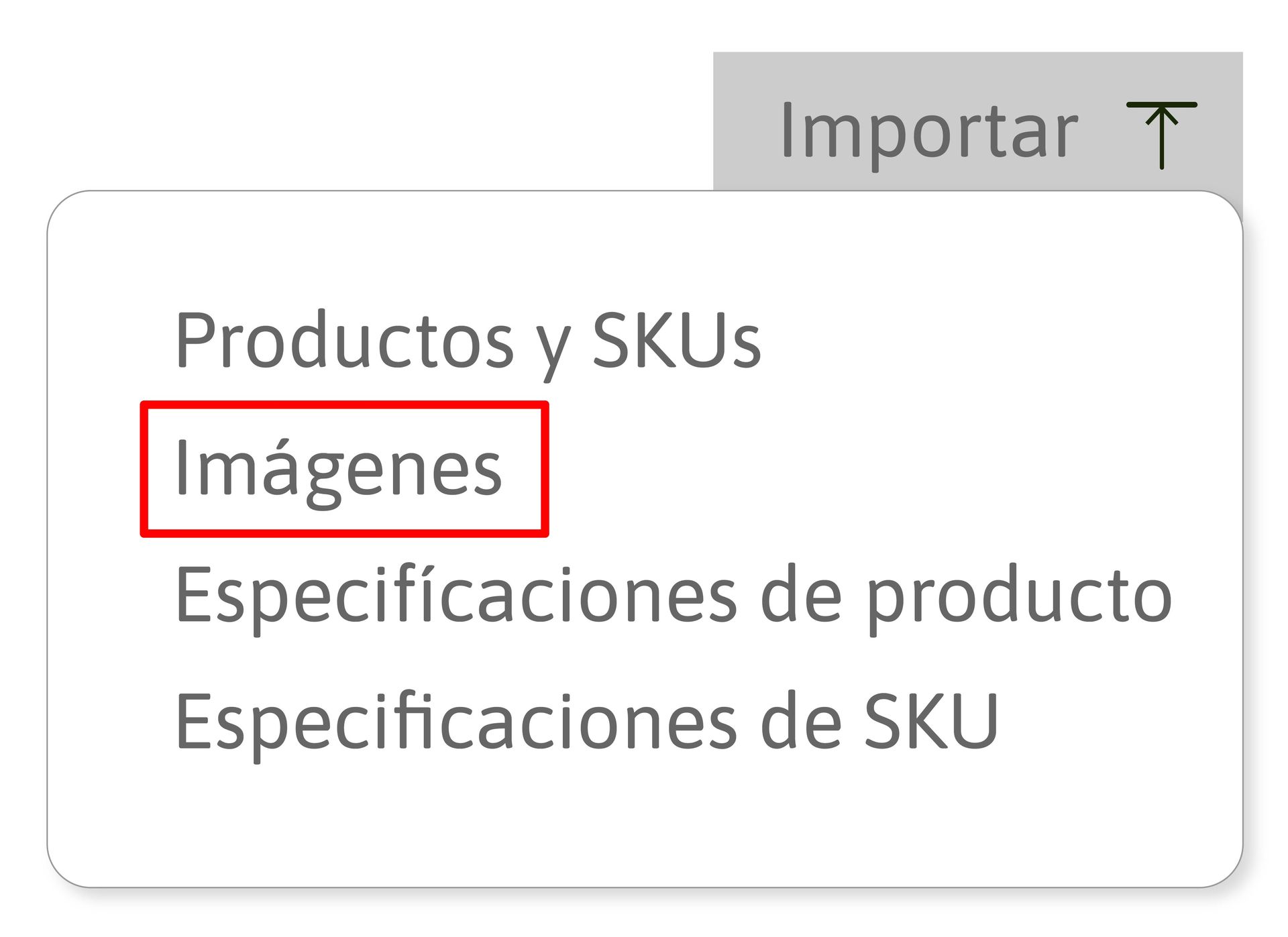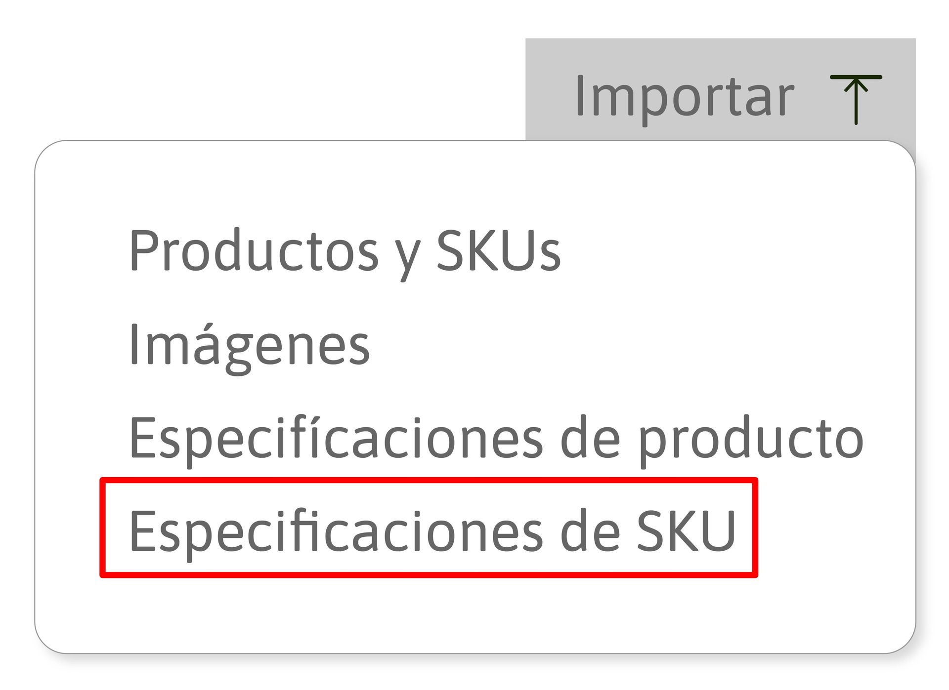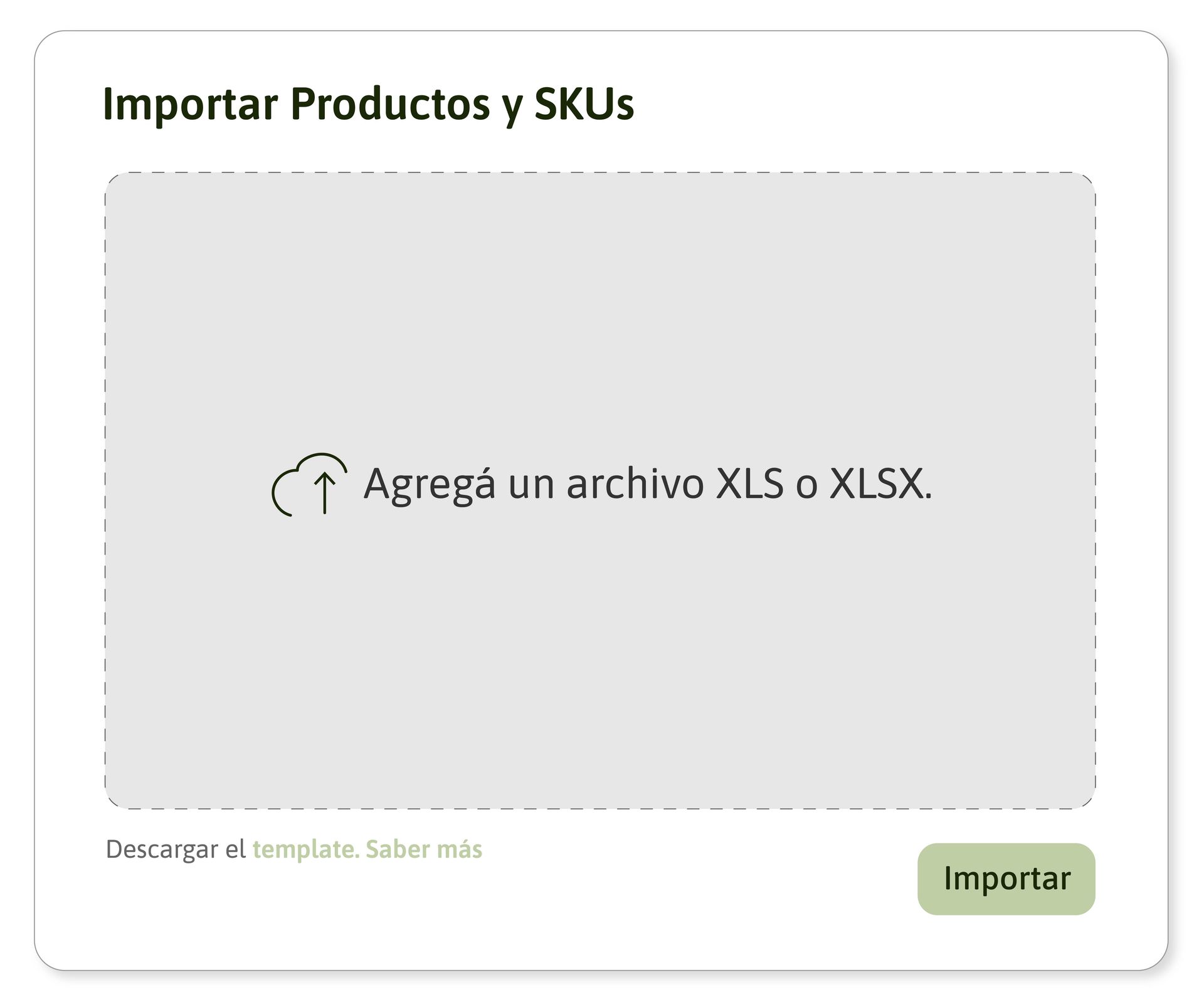 - Descargar de plantilla de Importación de productos/sku (template), dentro del menú Importar | Productos y Skus.