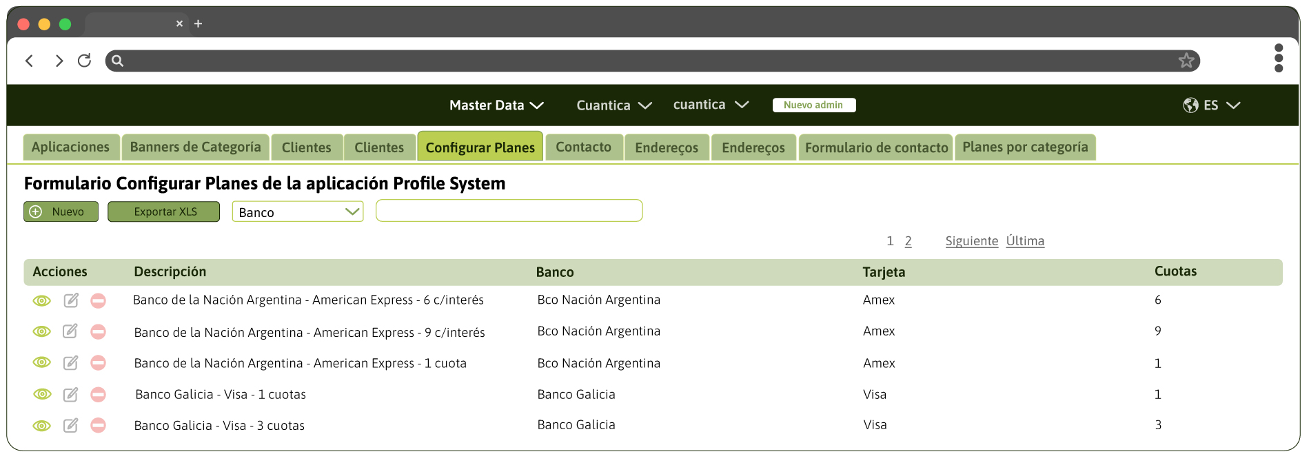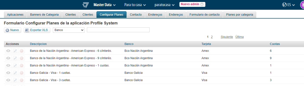 - Cuotas: en este campo el usuario de negocio podrá indicar la cantidad de cuotas que tiene el plan que se está creando.