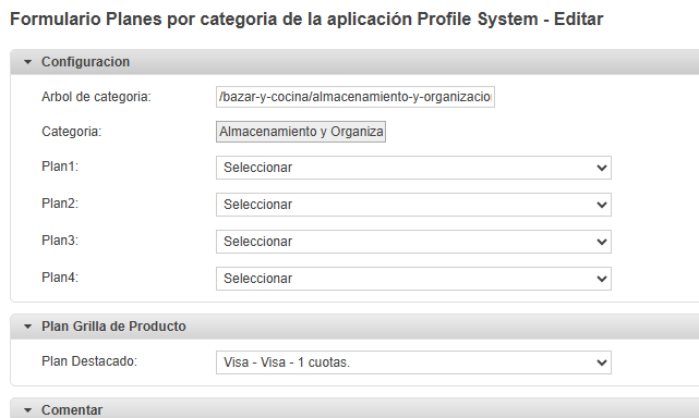 - Dentro del item Configuración, podrá seleccionar hasta 4 planes para destacar en la PDP en el contenedor Promociones Bancarias.