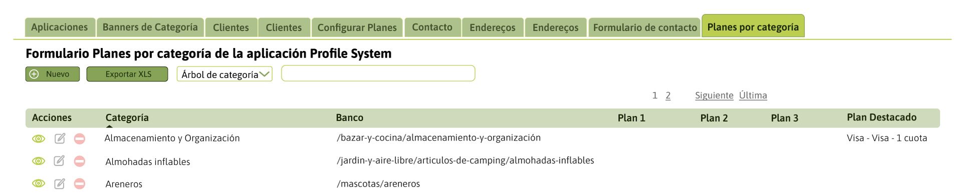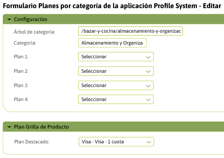 - Dentro del ítem Plan Grilla de Producto, podrá seleccionar el plan que desea destacar en la PLP y carruseles de productos.