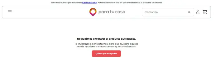 - Ofrezcan un canal de contacto directo o CTA cuando el producto no pueda encontrarse.