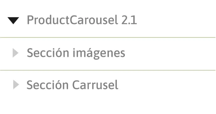 Por cada instancia implementada de dicho componente, podrá identificar los mismos con la siguiente nomenclatura: PRODUCTCARUSEL 2.1., PRODUCTCARUSEL 2.2., PRODUCTCARUSEL 2.3. etc.
