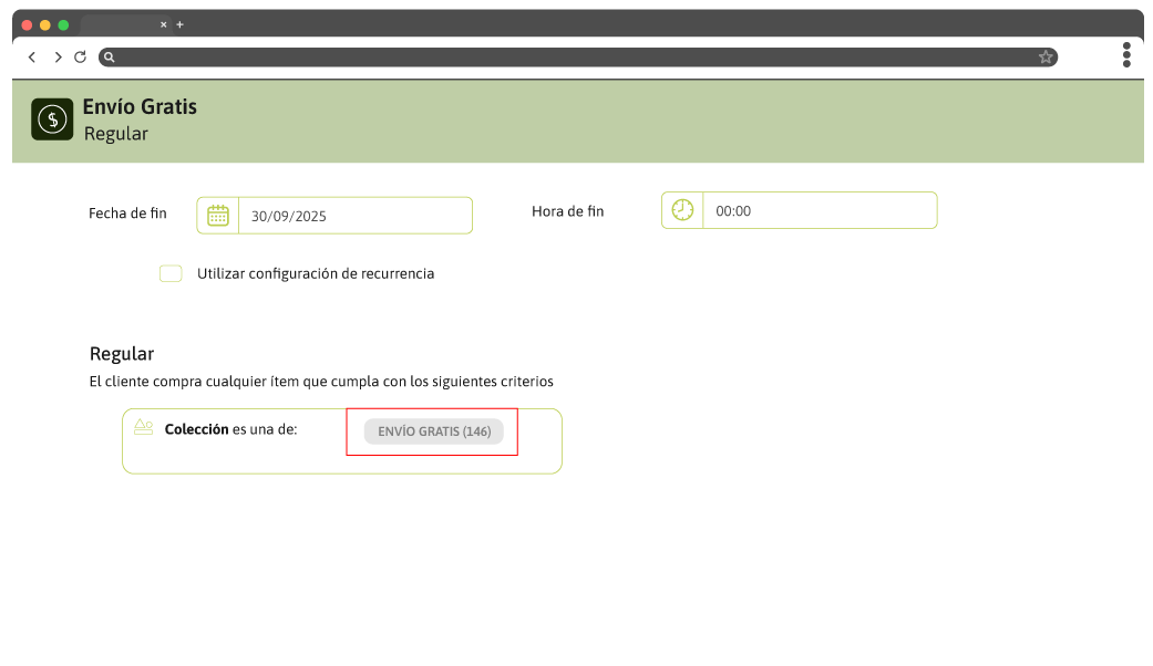 - En el mismo, seleccionar la colección Envío Gratis (id 166).