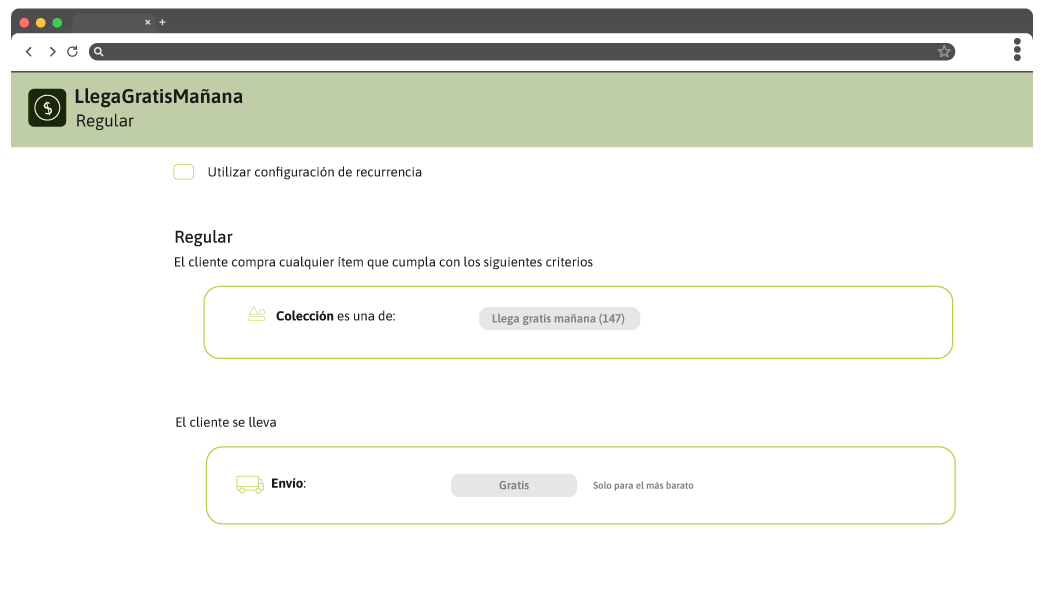 - En el mismo, seleccionar la colección Llega Gratis Mañana (id 167).