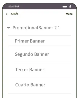 Por cada instancia implementada de dicho componente, podrá identificar los mismos con la siguiente nomenclatura: PROMOTIONALBANNER 2.1., PROMOTIONALBANNER 2.2., PROMOTIONALBANNER 2.3. etc