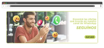 Este componente permite destacar una campaña o mensaje promocional mediante una imagen horizontal de gran visibilidad. Está diseñado para captar la atención del usuario de forma inmediata con un único mensaje claro. Se utiliza comúnmente para comunicar lanzamientos, beneficios exclusivos, eventos especiales o llamados a la acción relevantes, como seguir un canal de WhatsApp, acceder a una landing específica o visualizar una promoción principal.