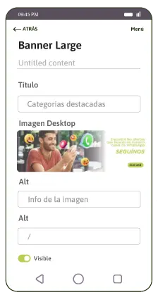 - Imagen: En este campo podrá seleccionar la imagen que desea mostrar en el item del contenedor. La misma debe tener un tamaño de 1200*300 px. Dicha imagen se utiliza tanto para resolución desktop como mobile.